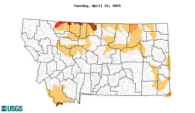 The USGS monitors drought conditions at more than 300 streamgages across Wyoming and Montana. Low-flow conditions are expressed as percentiles comparing current (within the past few hours) instantaneous flow to historical daily mean flow for all days of the year.