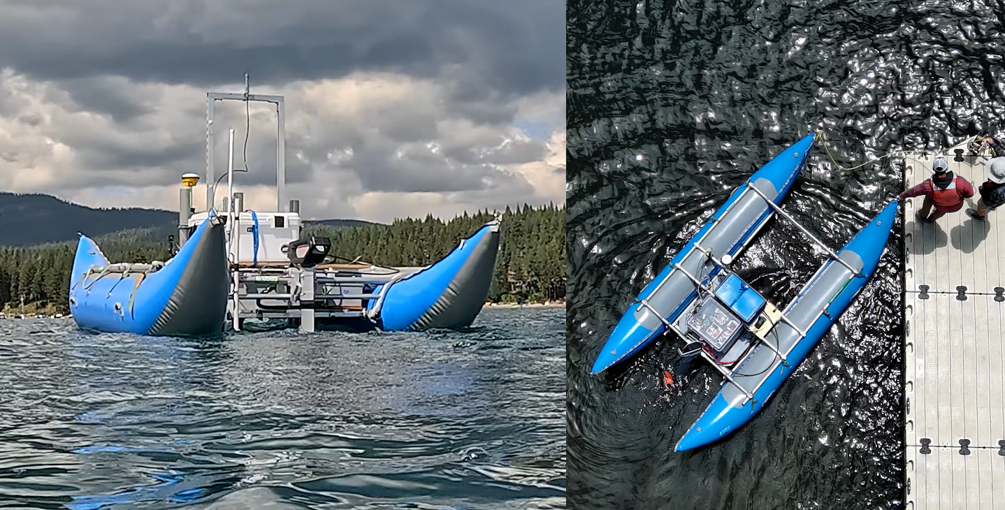 The Autonomous MAPping CATaraft, or “Autonomous MAPCAT”, is a remotely controlled, 14 foot long by 7 foot wide boat, built from an inflatable pontoon, aluminum frame, whitewater cataraft.