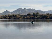 USGS Hydrographer, Janice Talley, collecting a water-quality sample at Hidden Lake along the Lower Gila River, December 2024