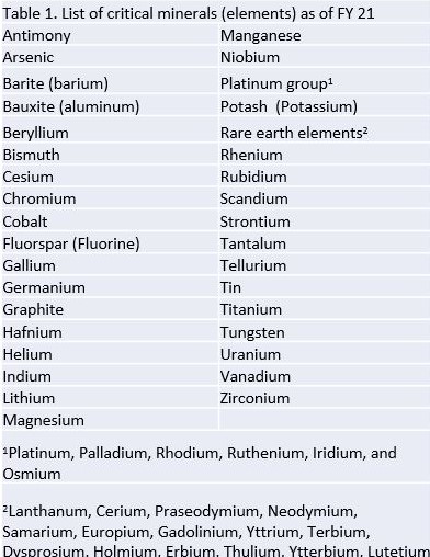List of critical elements for Outlining Potential Health Effects of Exposure to Critical Elements project