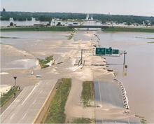 Aerial view of the Missouri River flloding on July 30, 1993, at U.S. Highway 54 just north of Jefferson City, Missouri, looking south.