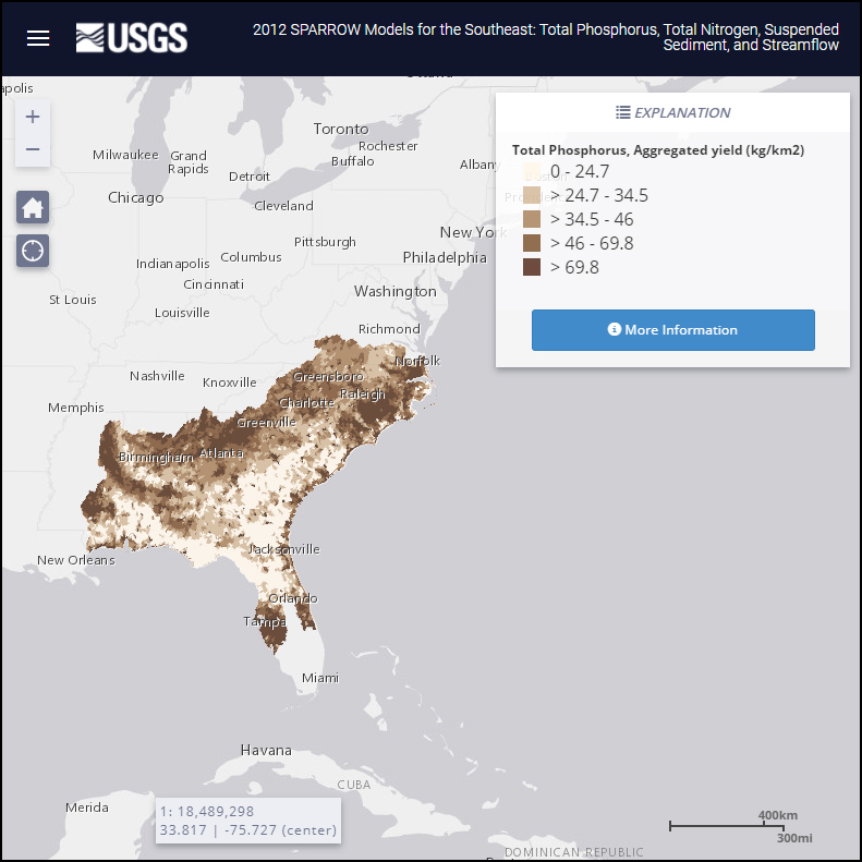 2012 SPARROW (SPAtially Referenced Regressions On Watershed attributes) interactive mappers are available for 5 regions of the conterminous U.S. These mappers simulate river streamflow, and nutrient and sediment loads and yields, that would occur under long-term average hydrologic conditions for the time period 1999 through 2014, and source inputs that occurred during or near 2012.