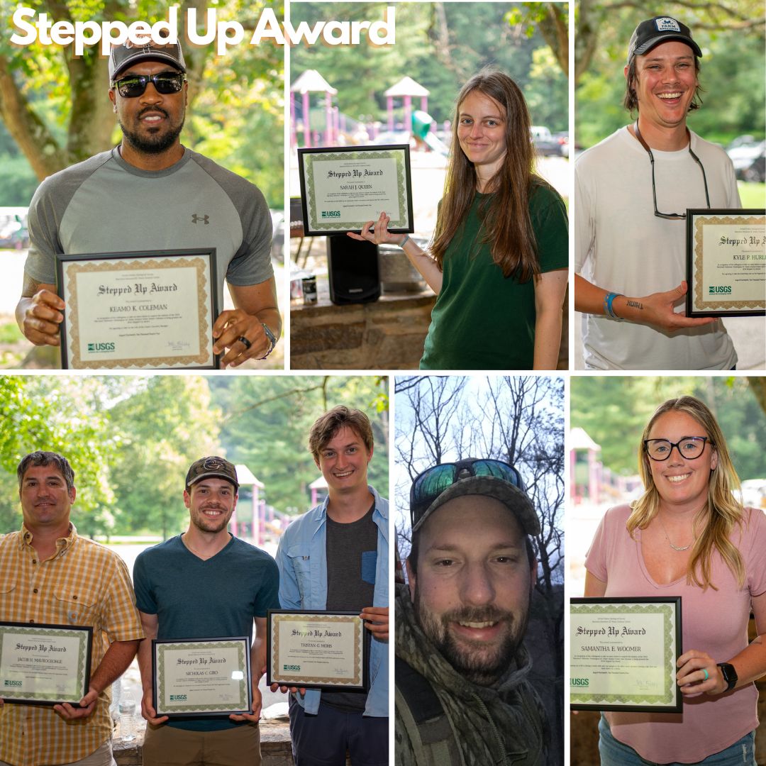 The following were awarded the MD-DE-DC WSC 2024 Stepped Up Award: Keamo Coleman, Sarah Queen, Kyle Hurley, Tristan Mohs, Jacob Mavrogeorge, Nick Giro, AJ Greise, Samantha Woomer, and Adam Mumford (not pictured).