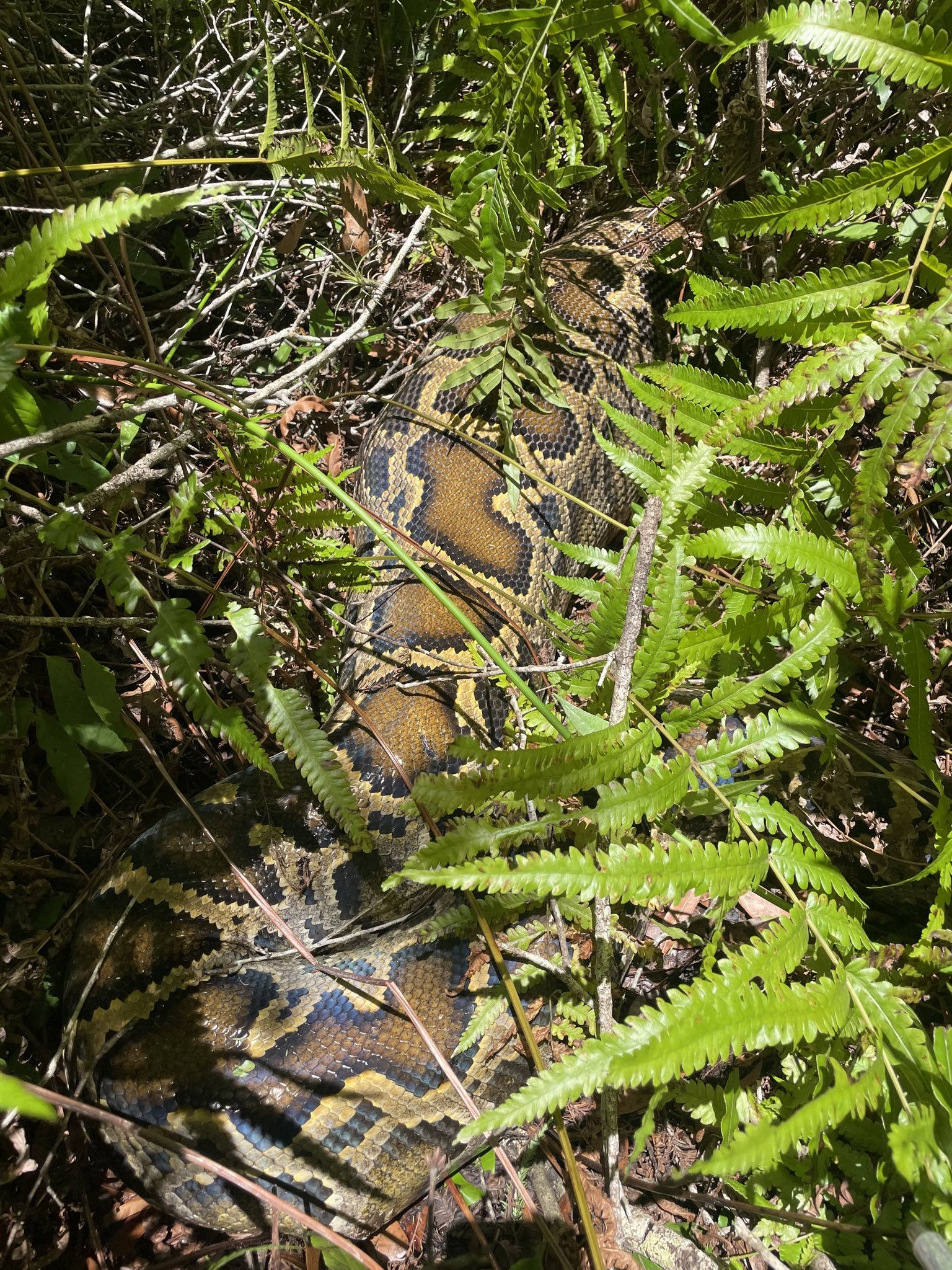 A Burmese python in the Florida Everglades with a large food bolus after prey consumption.