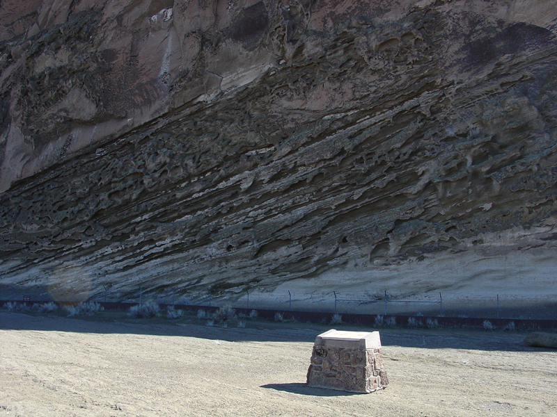 Cross-bedded tuffaceous sandstone at the Petrogphyph Point archeological site near Tule Lake in Lava Beds National Monument.