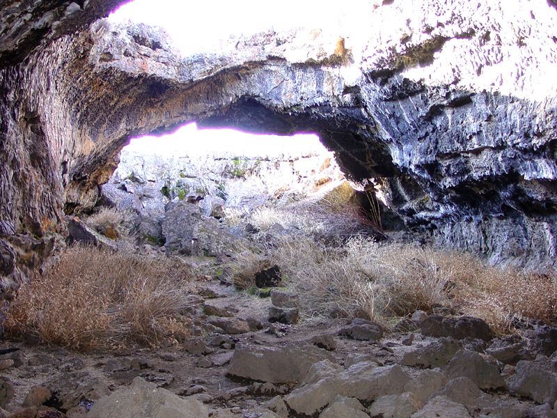 Collapse of a lava tube produced this natural bridge at the Garden Bridges area near Hopkins Chocolate Cave along the one-way Cave Loop Road near the park's Visitor Center.