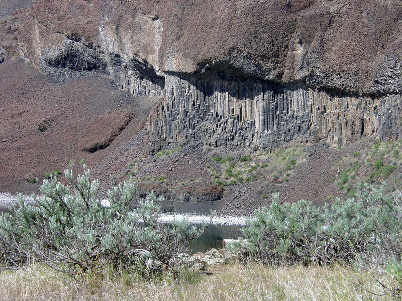 This view shows detail of the columnar basalt along the western shore of Lake Lenore in Grand Coulee.