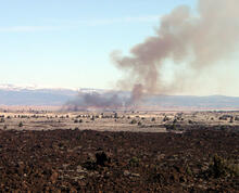 A photo of grass fires at Tule Lake.