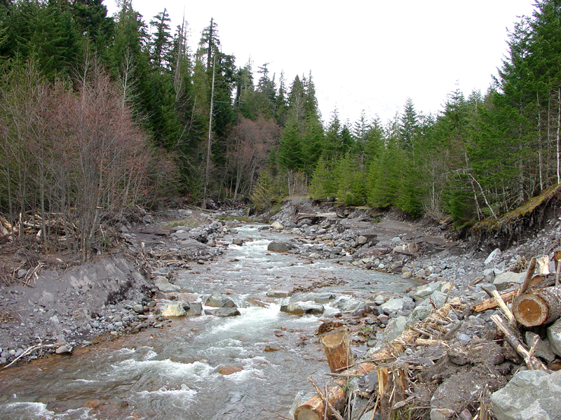 Debris flow and flood damage in 2005 along the Kautz Creek in Mount Rainier National Park.