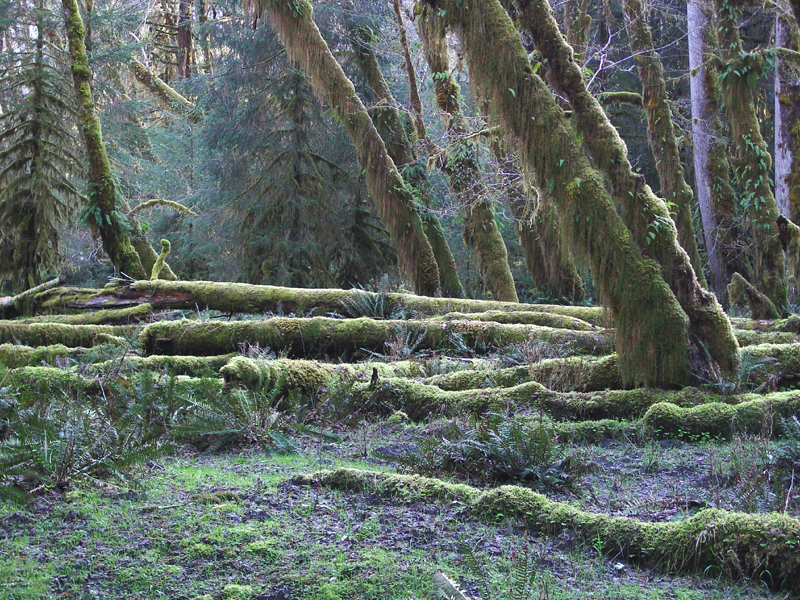 Moss covered fallen logs along the Spruce Trail in Hoh Rain Forest.