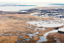 An aerial photograph of Blackwater National Wildlife Refuge. In this area of the refuge, vegetated marsh plain has been converted to open water due to sediment deficits, vertical land movement, and sea-level rise. Both sediment placement and hydrologic restoration can assist in increasing elevation and vegetation cover, thereby increasing resilience and ecosystem services. Photograph credit of the Chesapeake Bay Program.