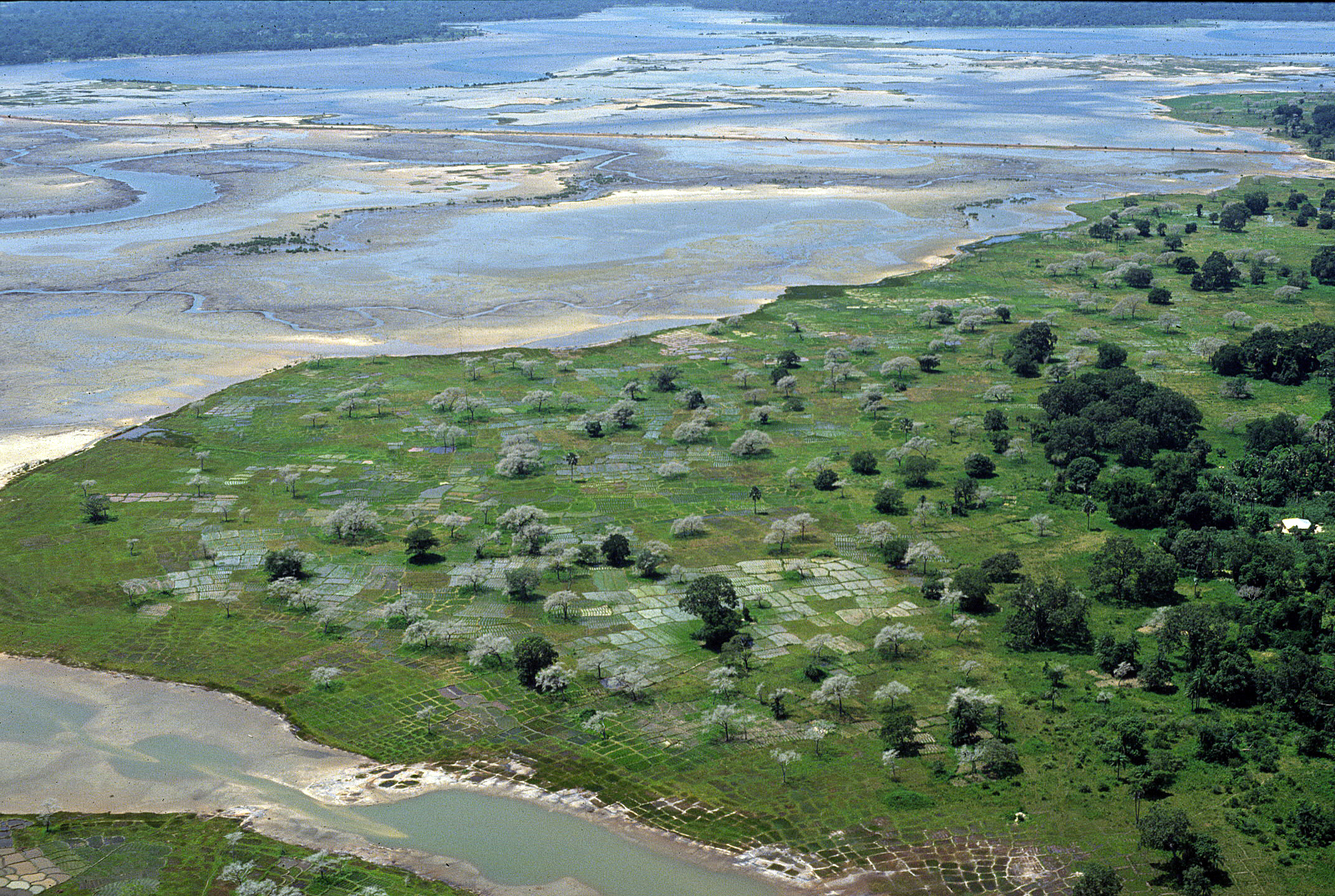 Aerial view of winterthorn (Faidherbia albida) trees among rice paddies near Ziguinchor, Senegal. The trees are protected by farmers. Gray Tappan USGS