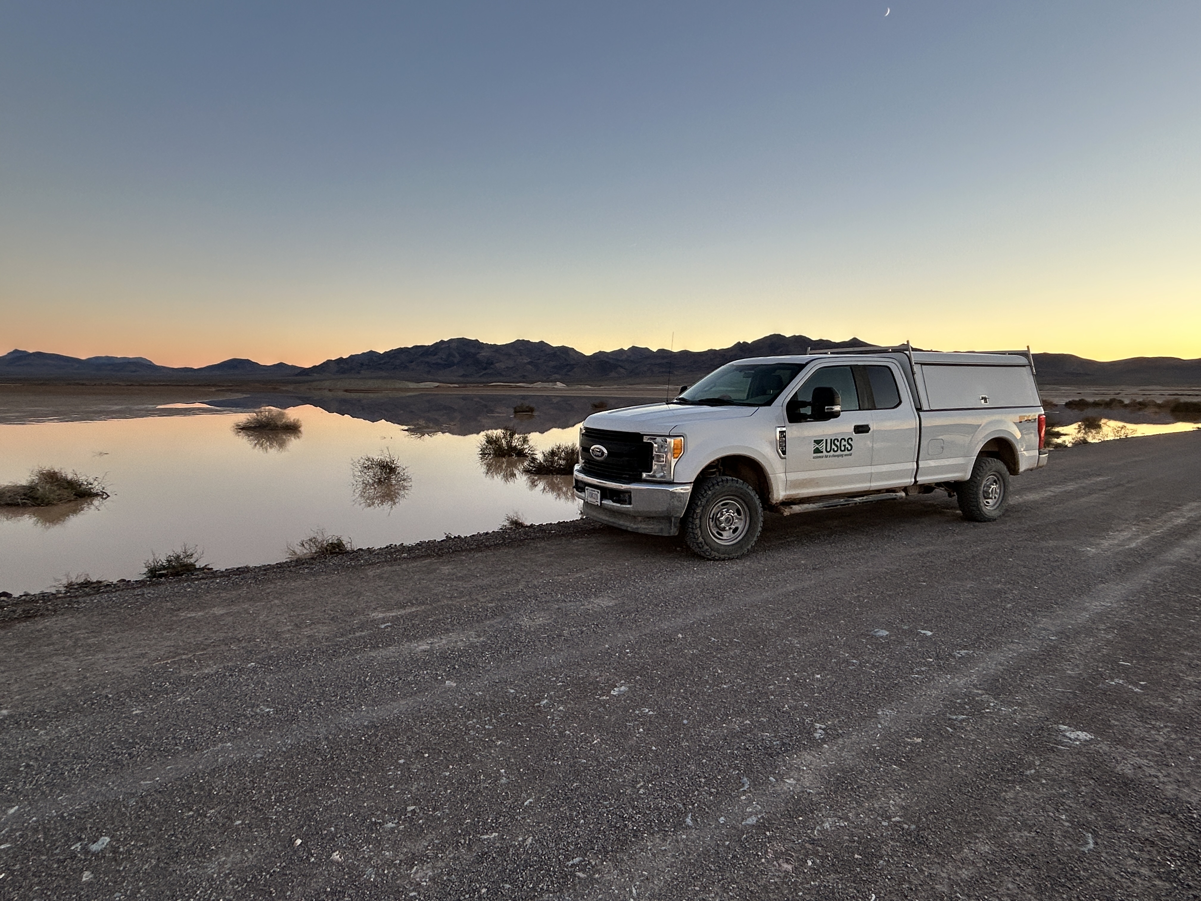 Photograph of Amargosa Flat playa north of Ash Meadows at dusk. For more information, visit the Amargosa Integrated Monitoring Network.