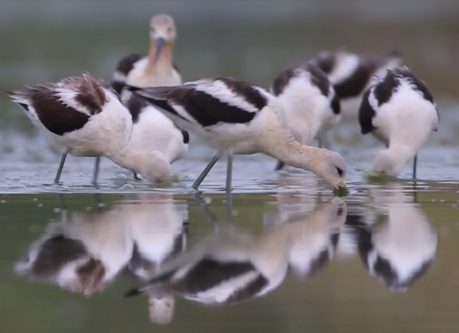 American avocets foraging in a pond at Malheur National Wildlife Refuge in southeast Oregon.