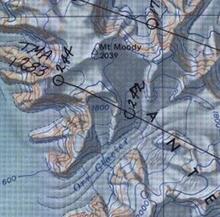 A flight line map of Mount Soza can be used to identify TMA flight line and frame numbers to facilitate the search for a photographic single frame record of Antarctica.