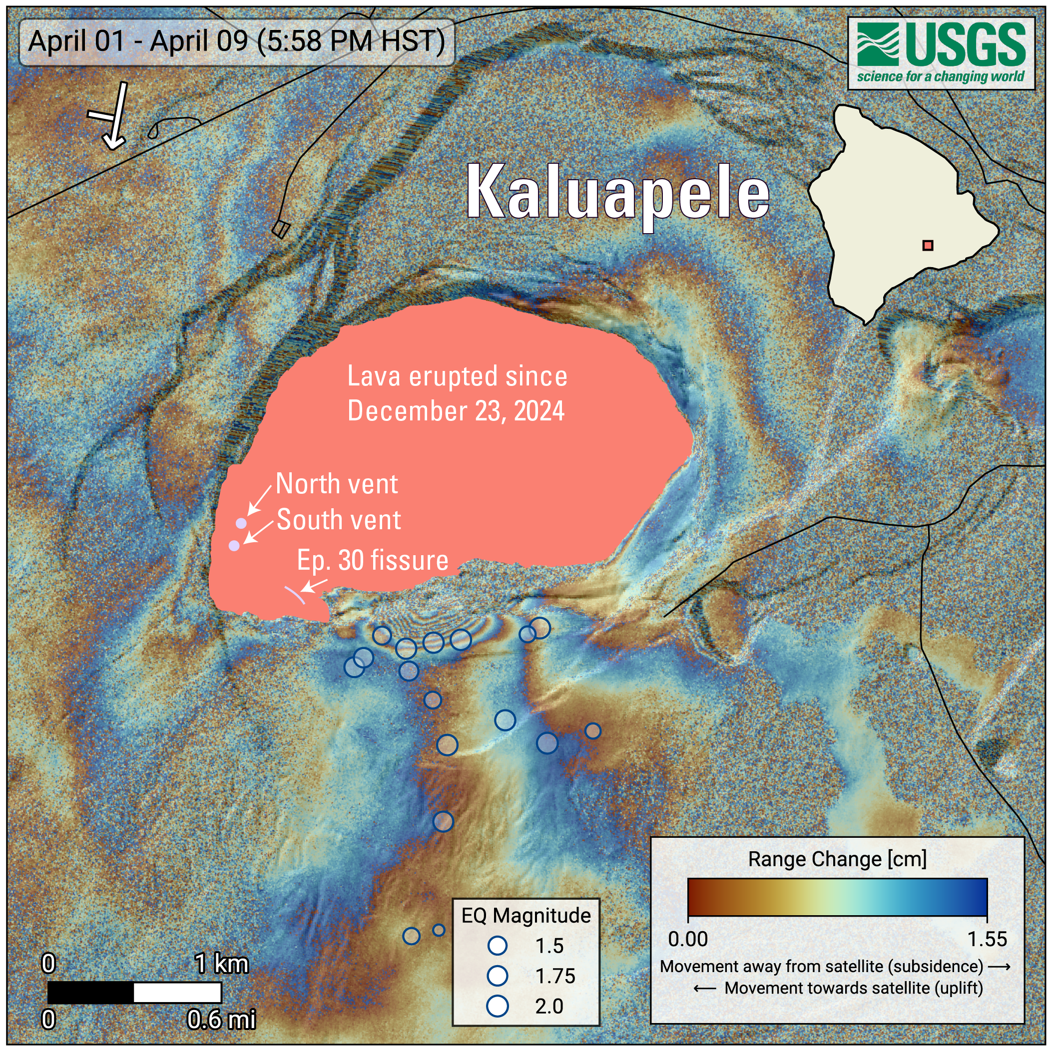 April 15, 2026—InSAR image of Kīlauea deformation associated with episode 44 of ongoing summit eruption
