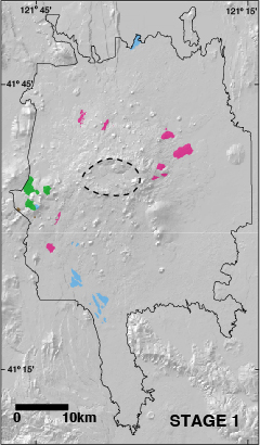 areas of MLV covered by lavas of during the first eruptive interval, 500 to 300 ka.