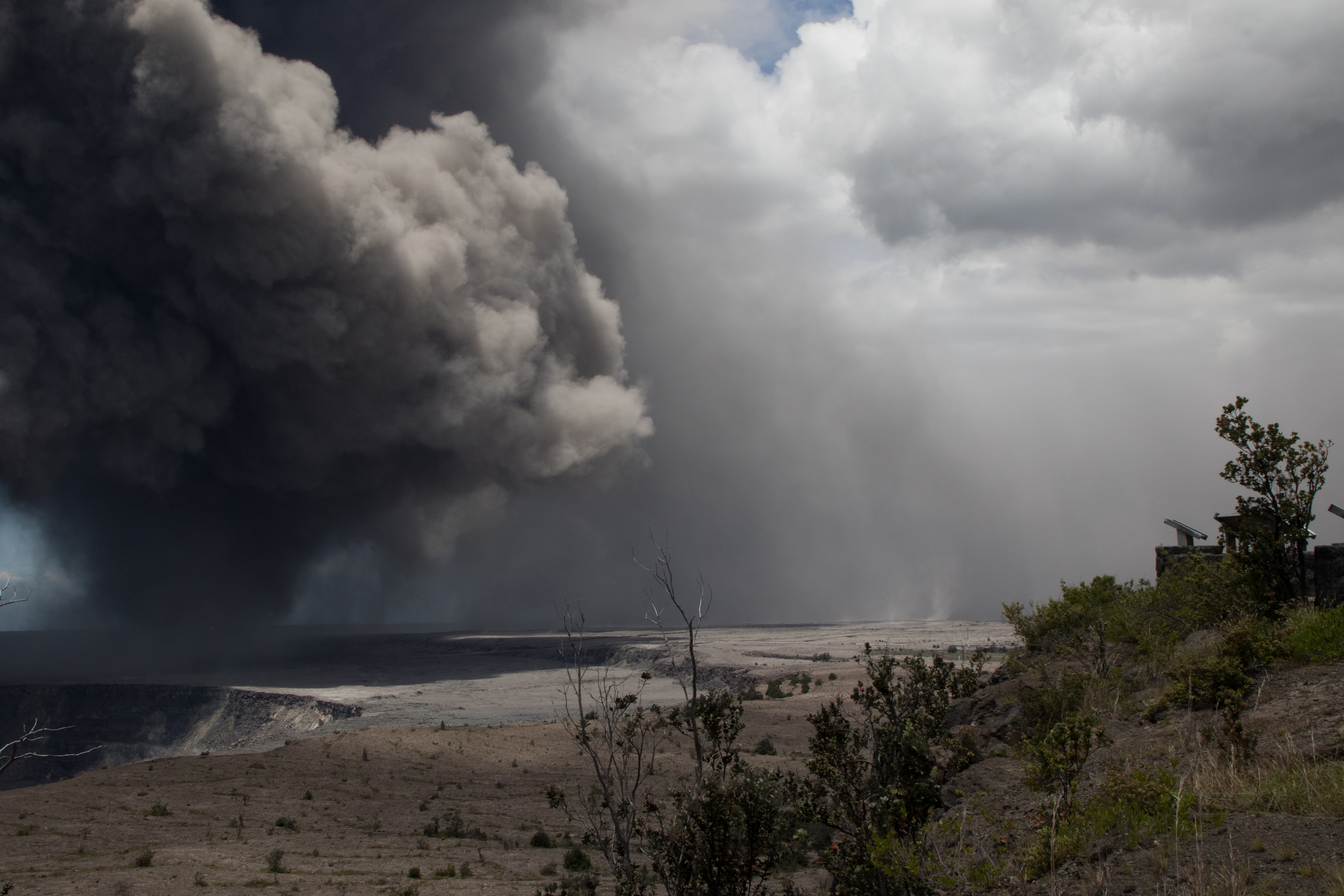 At 1:38 p.m. HST, ash drifts from Halemaumau southwest into the Kau desert.