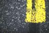Closeup of asphalt road with yellow road marking. (Stock Photo)