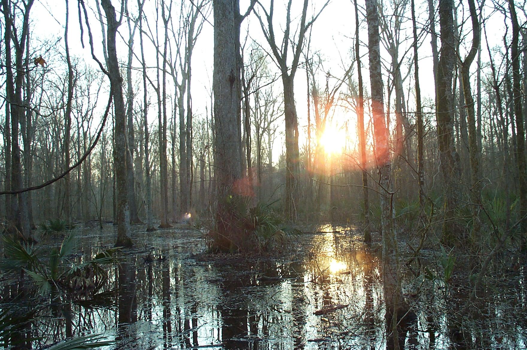 Bottomland Forest: Managed hardwood forests provide habitat for wildlife during all seasons.