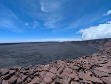 A view of Moku‘āweoweo, the summit caldera of Mauna Loa, taken from the north rim on August 12, 2025.