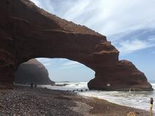 A rock on a beach in an arch shape.