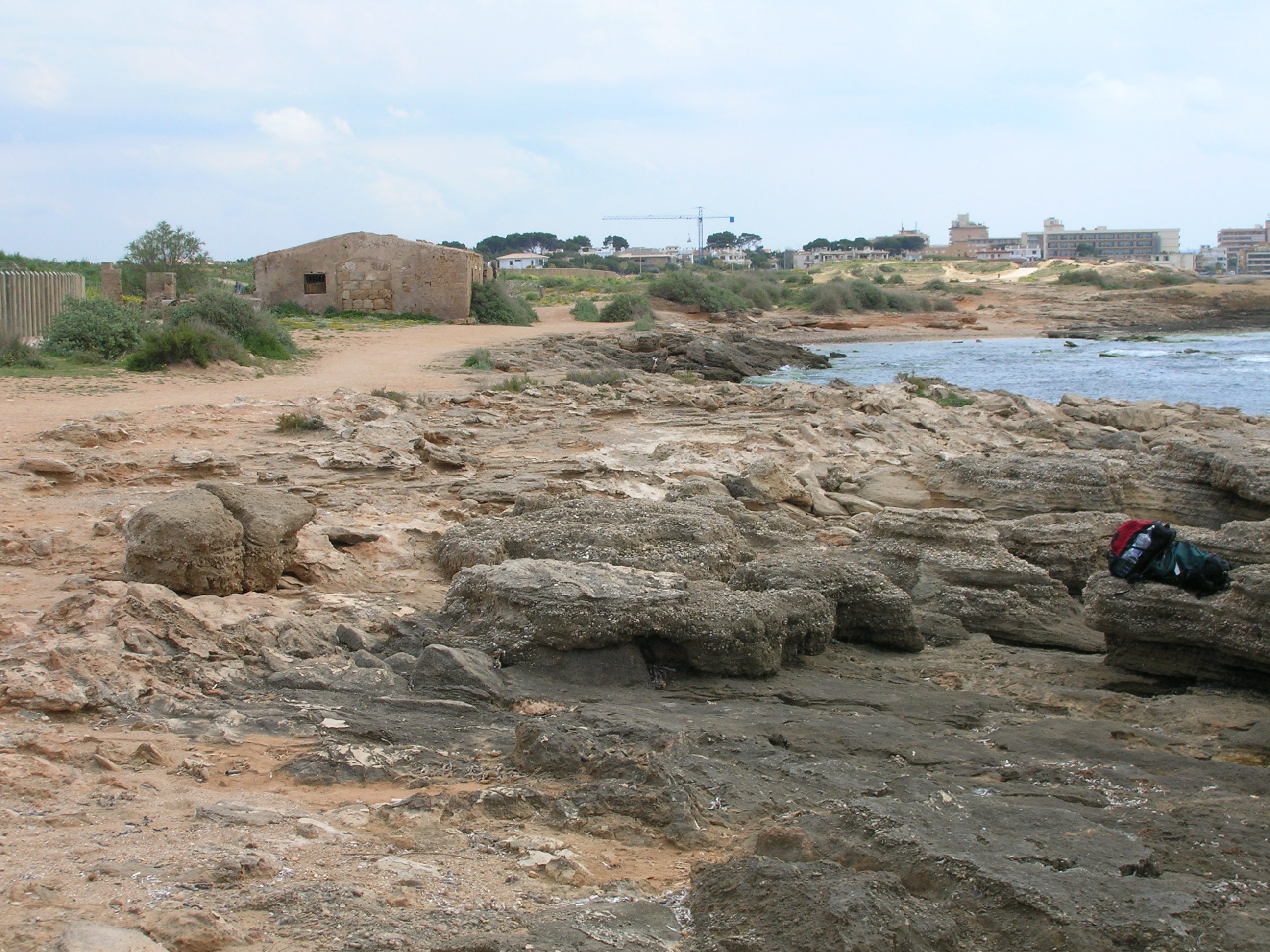Beach deposits of last interglacial age a few meters above present near Palma. (Muhs D.R., Simmons, K.R., Meco, Joaquín, and Porat, Naomi, 2015, Uranium-series ages of fossil corals from Mallorca, Spain: The "Neotyrrhenian" high stand of the Mediterranean Sea revisited: Palaeogeography, Palaeoclimatology, Palaeoecology, v. 438, p. 408-424)
