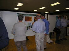Bill Eldridge (right; South Dakota School of Mines and Technology) explains research for his poster. This poster won first place in the student poster contest in 2014.