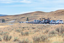 Bison jam in Hayden Valley