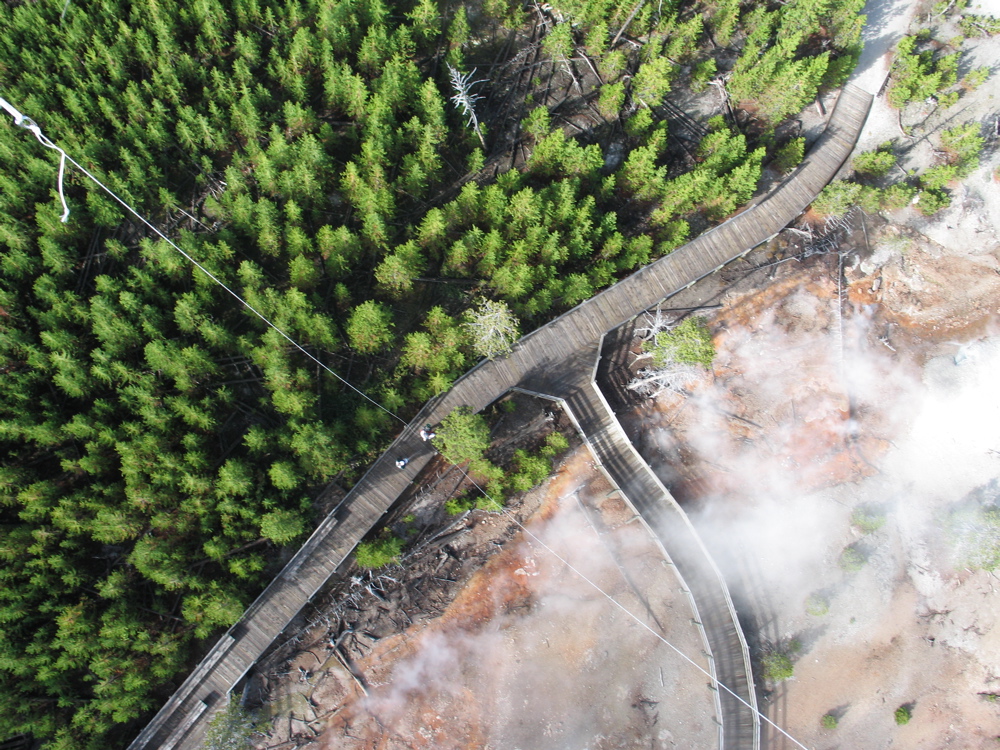 In September 2005, USGS/YVO Postdoctoral Fellow Brita Graham Wall used a radio-controlled camera, attached to a helium-filled balloon to take photos from the sky above the Norris Geyser Basin. Brita used these photos to gain insight into the distribution of cracks and fractures that feed the hot springs at Norris.