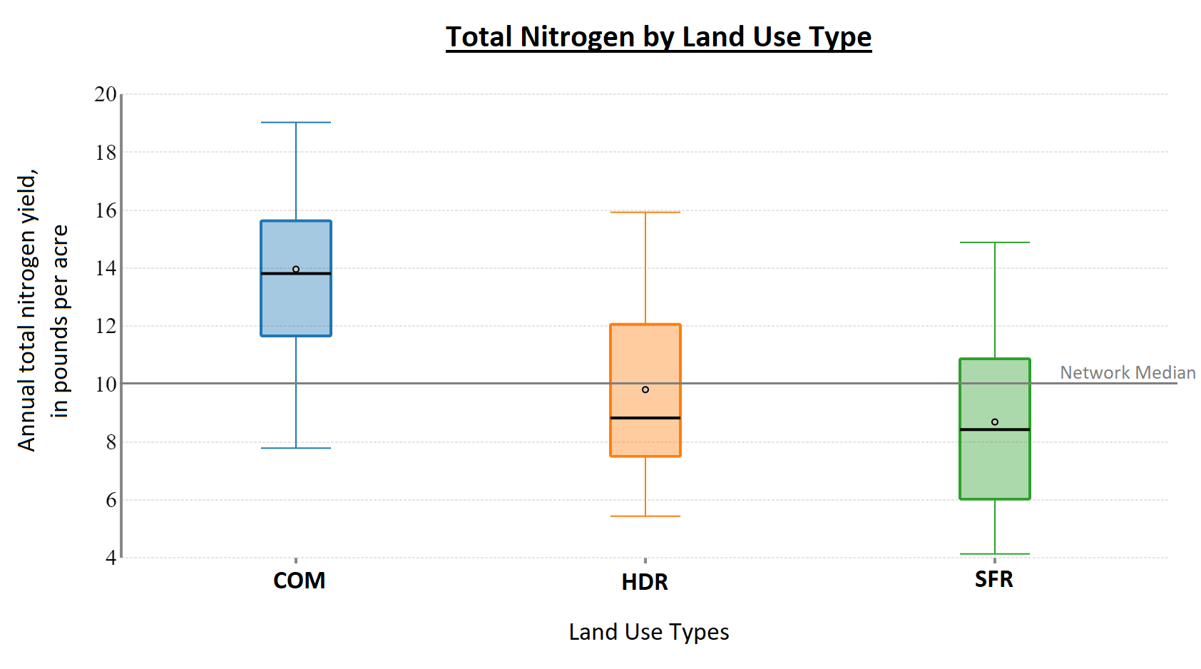 Boxplot - Total Nitrogen by Land Use Type, Hampton Roads VA Study Area