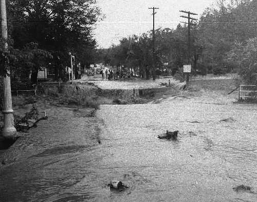 This bridge over the Fall River was washed out during the 1947 flood. Photograph courtesy of Fall River County Historical Society (used with permission).