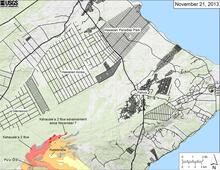 Map showing the Kahauale‘a 2 flow in relation to the eastern part of the Big Island.