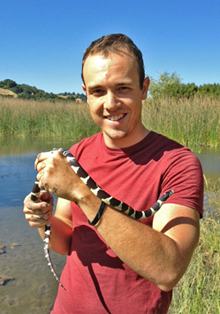 Jonathan Rose holding a California Kingsnake (Lampropeltis californiae) from the San Francisco Bay area.