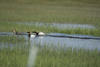 Canvasback ducks in a wetland.