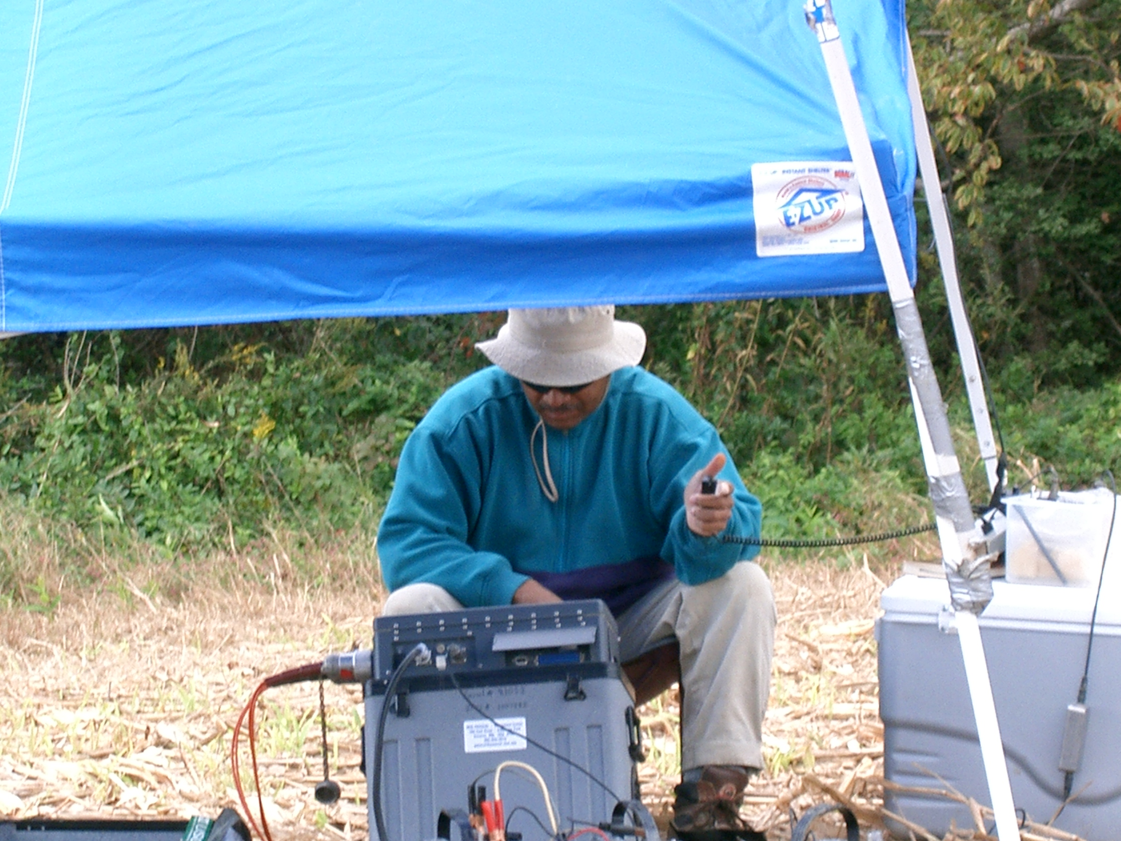 Rufus Catchings operating a multi-channel seismic system in 2011. (San Gregorio Fault, California)