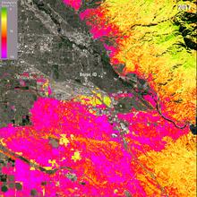 Improved cheatgrass mapping products from the USGS Earth Resources Observation and Science (EROS) Center offer a higher resolution picture of invasive grass extent than previously available across parts of the Western U.S. This image shows a 2017 cheatgrass coverage map for the Boise, ID area, atop a Landsat 8 image of the same area.