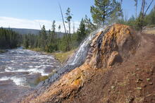 The Chocolate Pots feature discharging thermal waters into the Gibbon River.