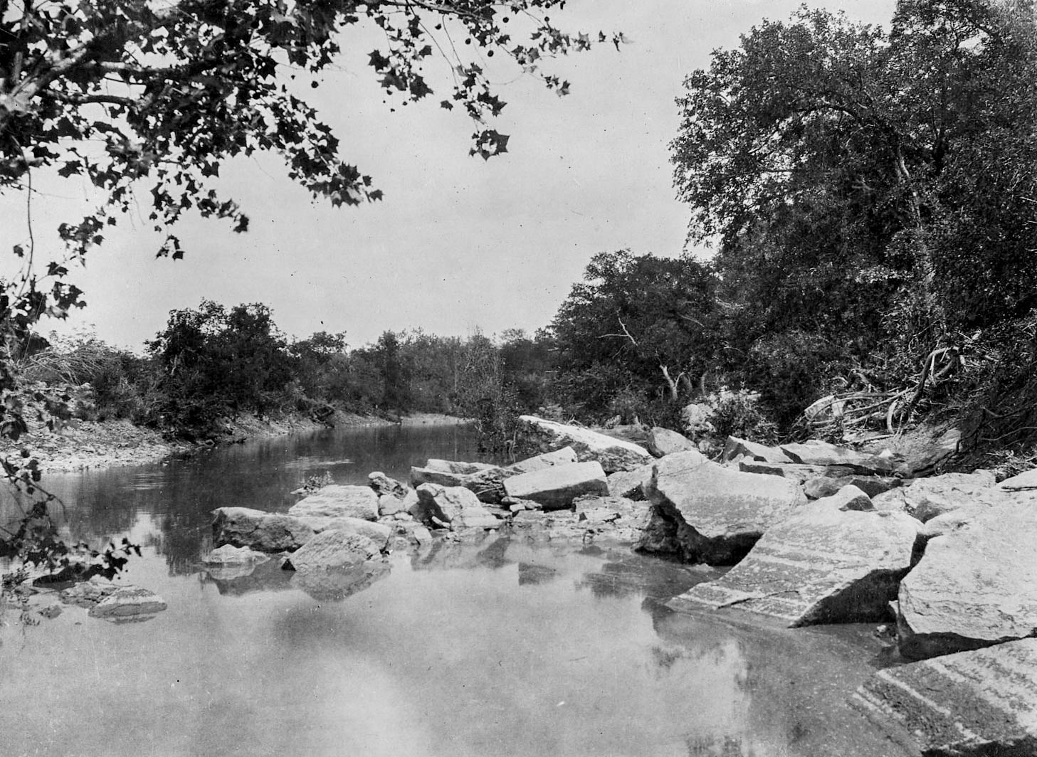 Water hole in Cibolo Creek, just above Bulverde road crossing, 22 miles north of San Antonio, Texas. April 16, 1918.