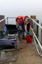 Sam Woomer cleans a water quality sonde sensor at Ship John Shoal lighthouse in the Delaware Bay.