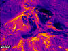 This clip shows a thermal video of the Fissure 8 cone. Small areas of higher temperatures (greater than 100 ° C, or 212 ° F) are present on the cone and likely represent residual heat in the cone and the underlying fissure. USGS video by M. Patrick.
