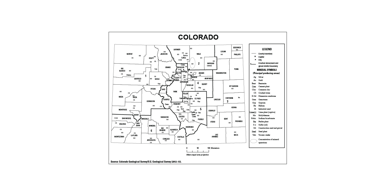 The Colorado chapter of the Minerals Yearbook Volume II - Area Reports, Domestic - contains data and information on the nonfuel mineral commoodities produced in Colorado including a generalized map of principal mineral commodity producing areas. Both PDF and XLS versions of text and data are available