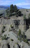 View across The Narrows of the Grand Canyon of the Yellowstone. The lowest part of the cliff is composed of river-deposited gravel. Above that is a single columnar-jointed basalt flow overlain by glacial till.