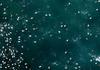 An aerial image of a flock of waterfowl floating on the ocean.