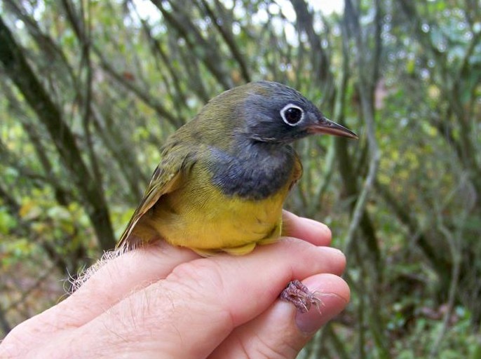 Adult male Connecticut Warbler banded at the BBL’s bird banding station on Patuxent Wildlife Research Refuge.