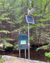 Newly established continuous streamgage on downstream right bank at Mill Brook at Plainfield, MA - 01178230. Gage is located on River Road.