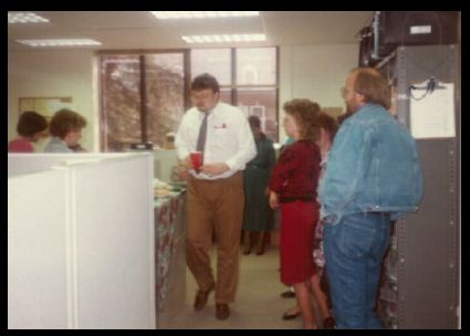 Craig “Tut” Tuthill enjoys refreshments at a BBL holiday party, circa the 1990s.
