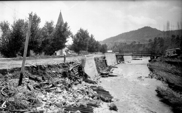 Damage and debris left by the flood along the Fall River. Photograph courtesy of Fall River County Historical Society (used with permission).