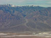 This zoomed-in view is looking west toward Panamint Mountains with Telescope Peak (elevation 11,049 feet) being the highest point in Death Valley National Park (on the left). Massive alluvial fans drain from canyons draining the eastern side of the Panamint Range, this fan is located at the mouth of Hanaupah Canyon.