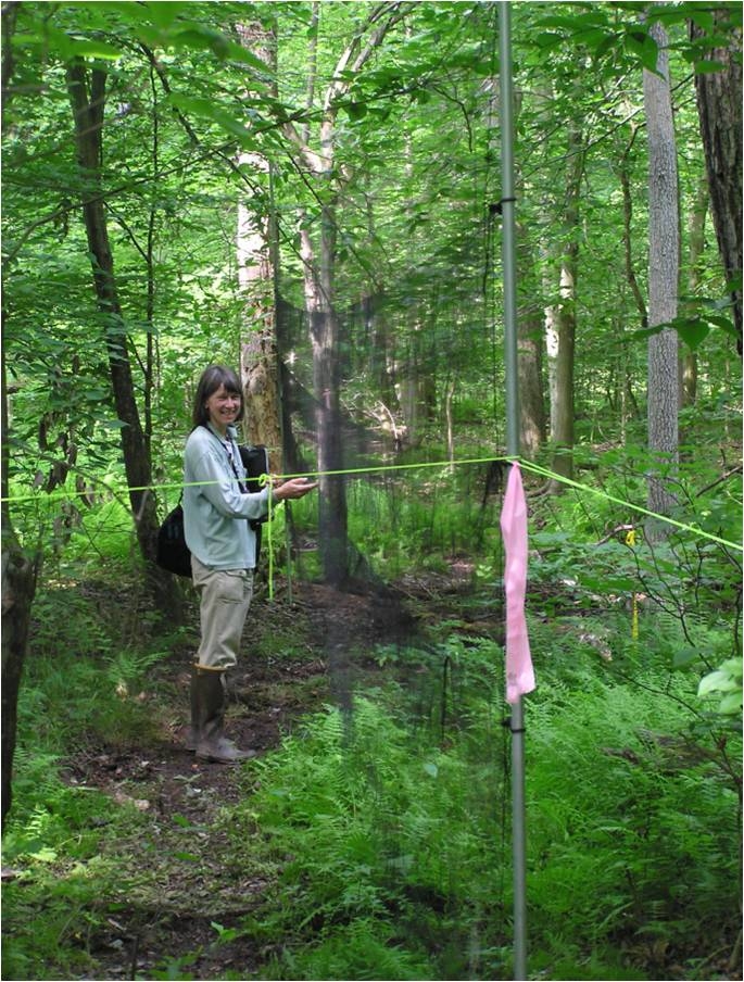 Deanna Dawson collecting birds caught in a mist net